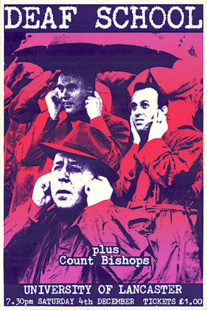 Poster for gig by Liverpool band, Deaf School – using a reproduction of a photo of observers of an H bomb test.