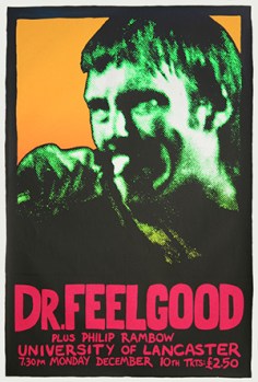 Previous Image Next Image Dr Feelgood Dr Feelgood plus Philip Rambow Lancaster University gig poster Screenprint 20x30ins 1979