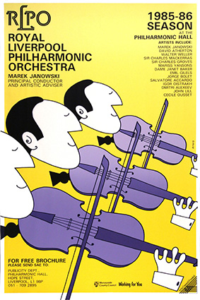 Previous Image Next Image RLPO : 1985-86 Season Violins Royal Liverpool Philharmonic Orchestra 1986 Screenprint 20x30in