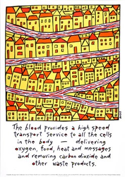 Previous Image Next Image The blood provides a high speed transport service… One of a series of posters on the heart, blood, and circulation A2 offset-litho 1993