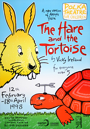 Previous Image Next Image The Hare and the Tortoise Vicky Ireland Polka Theatre for Children, Wimbledon. London 1998 Offset litho A3