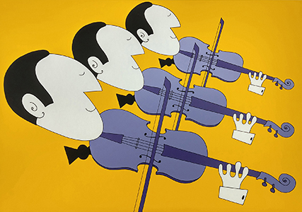 Previous Image Next Image Three Violins Three Violins Screenprint 25x18ins Commissioned by Royal Liverpool Philharmonic Orchestra for 1986-87 season brochure