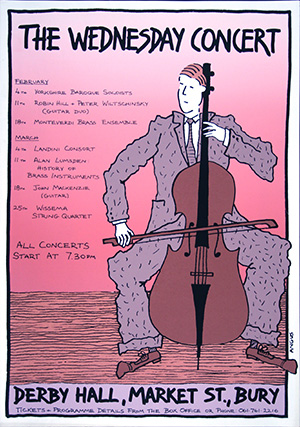 Cello/Bass Derby Hall, Bury 1981 Screenprint 45x64cm
